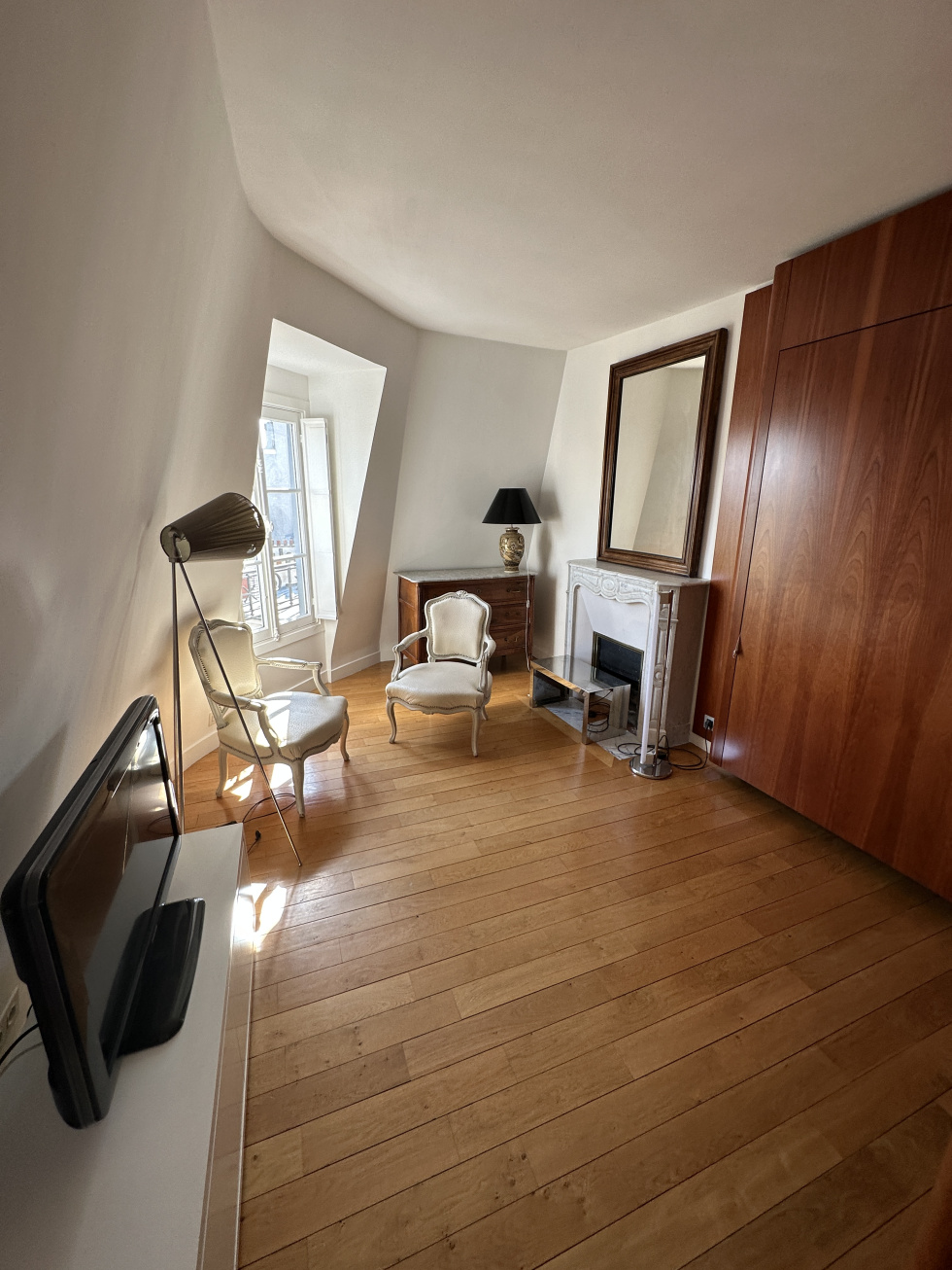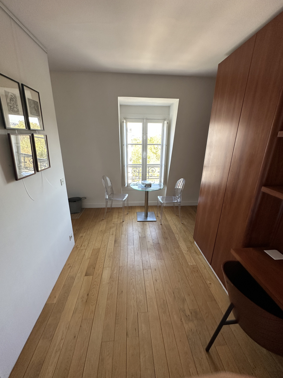 Vue exceptionnelle sur la Tour Eiffel, le champs de Mars dans un bel immeuble Haussmanien au 6ème et dernier étage avec ascenseur, un studio d'exception de 27,83m2 au sol et de 23,80m2 loi carrez, offrant une belle vue dégagée Au calme, avec climatisation réversible, se composant d'une entrée avec un coin bureau et placards, une salle de douches avec un wc, une pièce principale PAS DE LAVE LINGE Libre de suite RARE COUP DE COEUR assuré ,