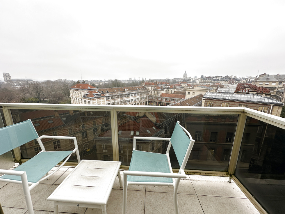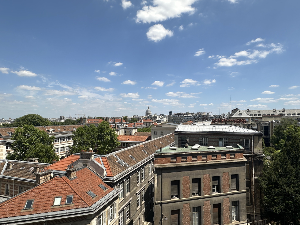 Jardin du Luxembourg, rue d'ASSAS au 7ème et 8ème étage avec ascenseur un appartement en duplex en bon état, Offrant une vue dégagée exceptionnelle sur le jardin du Luxembourg et monuments, Ensoléllé et calme, se composant au 7ème, d'une entrée, un salon, une cuisine ouverte équipée, une salle de douches avec un wc, placards, un balcon Au 8ème une entrée, une chambre, une salle de douches avec un wc, un balcon Produit rare Coup de coeur assuré